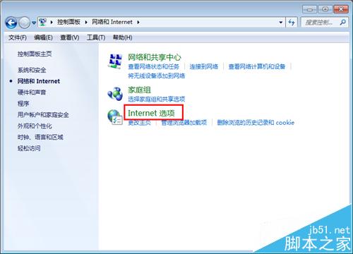 3、进入“网络和internet”页面,点击“internet选项”。
