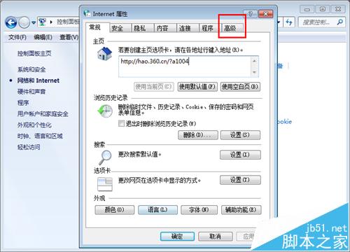 4、进入internet属性界面,点击上方的“高级”按钮。