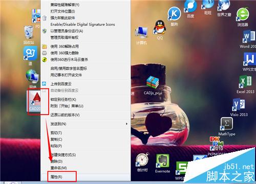 3、回到桌面上,右键点击“cad2015图标”点击“属性”。