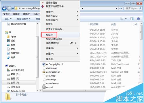 6、使用右键粘贴刚才复制的文件,或者是“ctrl+v”粘贴文件。这时候重启cad,有一定的效果。