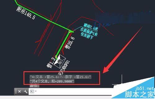 1、回到图纸的操作界面,先用鼠标左键点选择多个含数字的文本,然后在命令行中输入 as, 此时敲一个空格,就会得到选中的数字的和了.