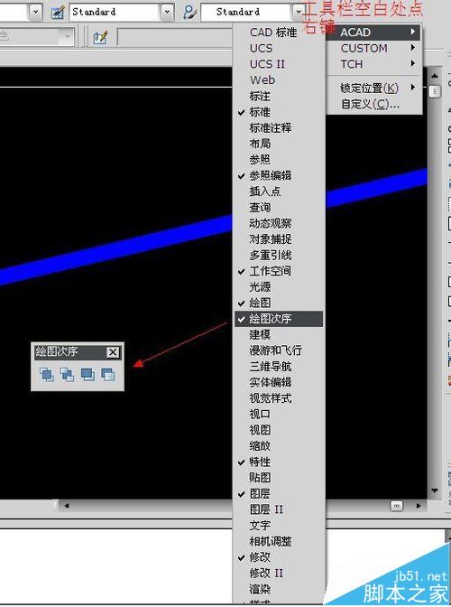 在工具栏空白处点击鼠标右键,在弹出的菜单中打开“绘图次序”工具栏。