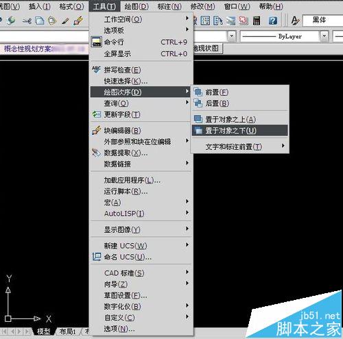鼠标点击“工具菜单”-“绘图顺序”,根据实际情况选择相应的操作。