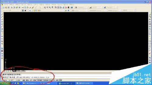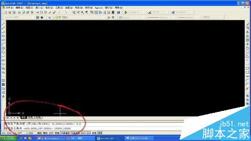 2、在下方命令输入框里用键盘输入“0,0”,然后按回车键。(定义图形界限的左下方坐标)