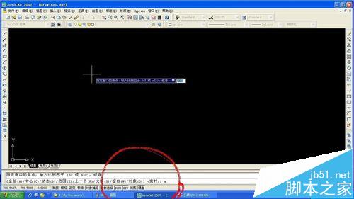 3、在下方命令输入框里用键盘输入“25000,35000”,然后按回车键。(定义图形界限的右上方坐标,比需要画的图形大出5米左右)