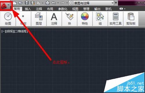 2、首先点击CAD界面的左上角的图标,如下图示:
