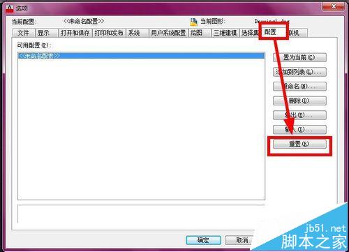 2、然后点击“配置”-“重置”按钮,如下图示: