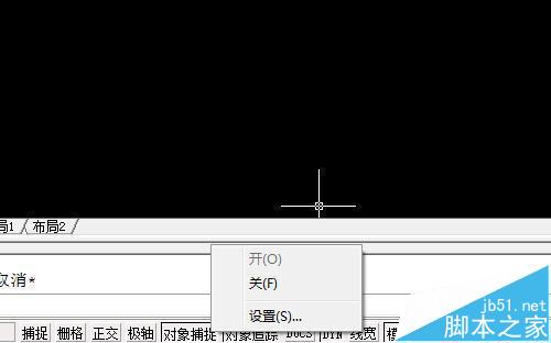2、把鼠标放在对象捕捉或对象追踪上,点右键出现“设置”。