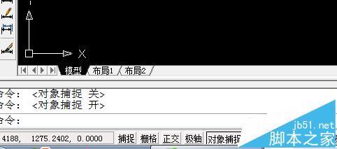 5、用快捷键“l”,画一条直线,然后打开“对象捕捉”。