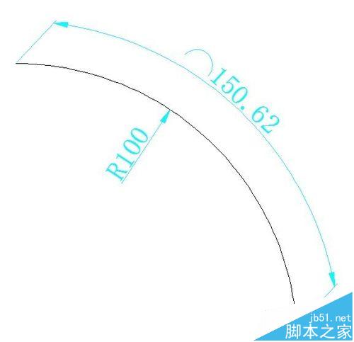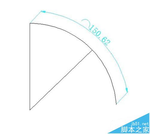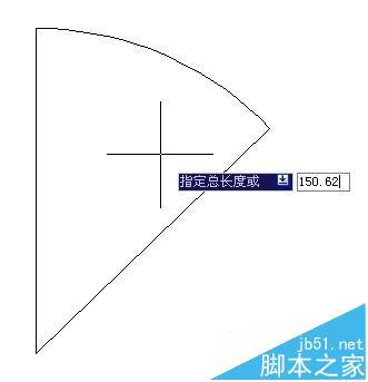 3、我们输入len回车,输入t回车,输入150.62回车,点击选中弧线,弧线就立刻变成我们要的弧线了。
