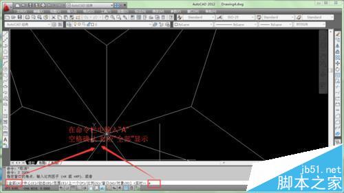 3、然后,在命令栏中输入“A”,大小写都可以,空格或回车确认。