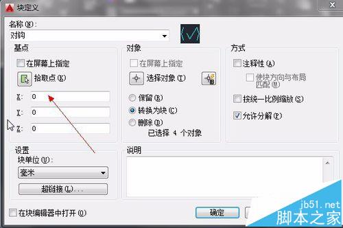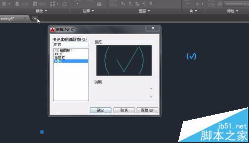 4、下面随便将块放在图纸上,鼠标左键双击这个块。会出现如下对话框,单击确定。