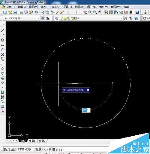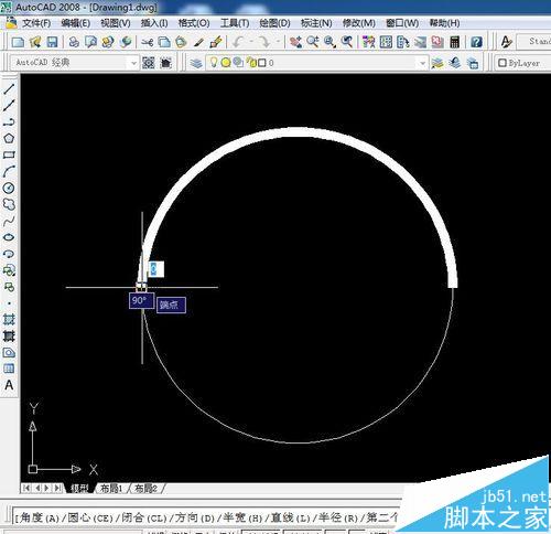 2、使用多段线命令,选中圆上一点,点击下方命令栏的‘’圆弧A‘’。