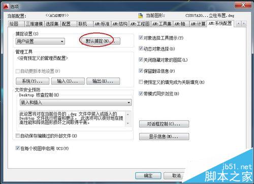 2、点击“系统配置”--默认捕捉