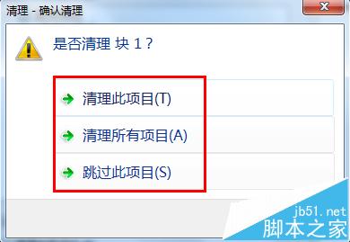 3、这时会弹出是否确认清理项目的窗口,可以选择清理此项目、所有项目和跳过该项目。
