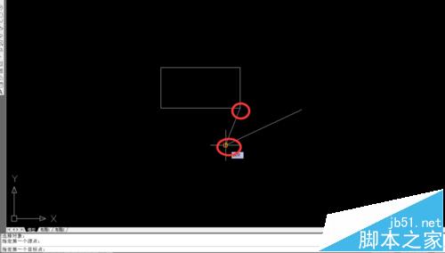 3、选择矩形(即要缩放的对象)。提示“指定一个源点”。