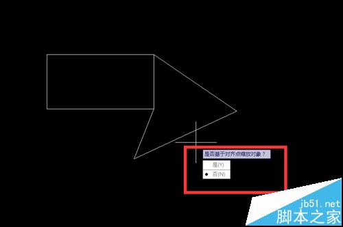 6、提示“指定第三个源点或<继续>”,按空格键,选择继续。然后提示“是否基于对齐点缩放”,选择“是”