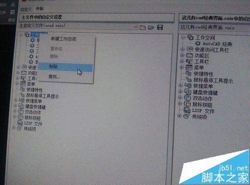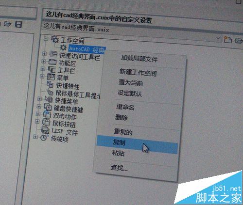 5、复制工作空间中的CAD经典,并在左边的分裂窗口中粘贴: