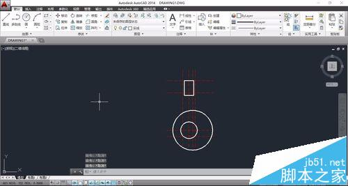 11、绘制以最下方的中心线交点为原点,半径为40的圆。
