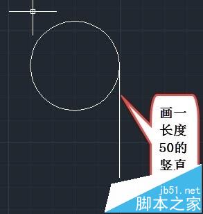 3、在圆的最左边或者右边象限点,为起点向下画竖线长度为50-60,我选择50。画直线快捷键L,竖直向下输入长度50——空格或者回车