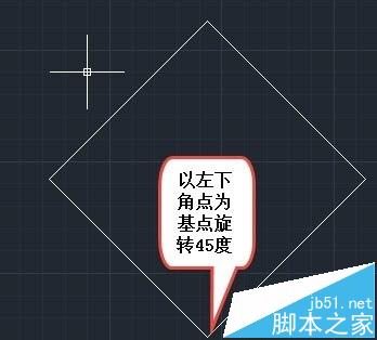 2、以正方形左下角为基点旋转45度,选中左下角——出现夹点——右键旋转——45度。