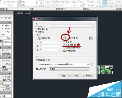 3、因为我们现在是要把原图纸中的某部分分块单独保存出来,所以我们选择——转换为块。然后在点击图中被圈出来的部分。