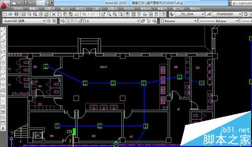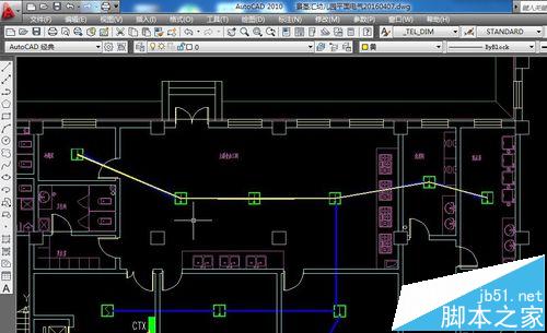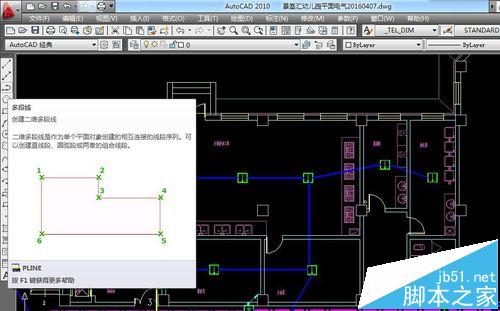 5、选中多段线后在图纸中沿着线路走向画出多段线。