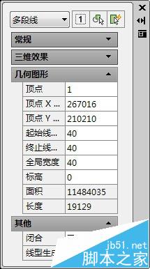 8、在特性对话框中找到几何图形,最后一项长度,即为该多段线的长度。