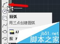 5、选择绘制圆弧。然后把三个端点连接起来。