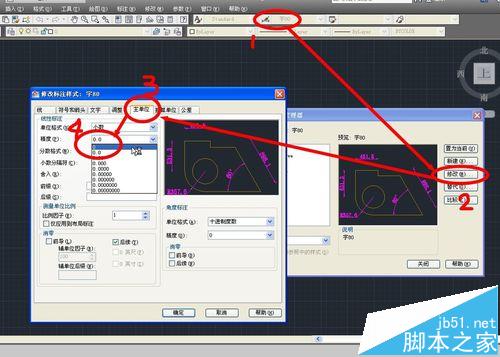 8、点选上方的标注样式设置(或者选菜单栏的【标注】→【标注样式】)选用自己使用的标注项目,修改,在主单位这一栏,把精度从小数点后1位设置成个位数(0.0→0),点确定,客户提供的原图就出来了。