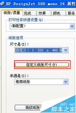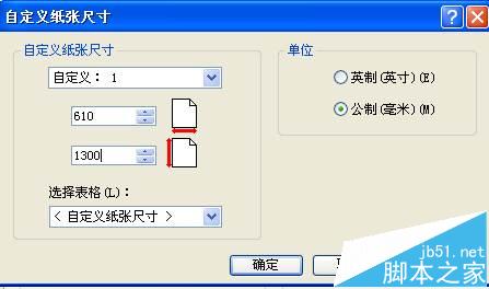 3、点击自定义纸张尺寸