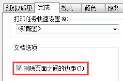 5、在”完成”选项卡中勾选”删除页面之间的边距”