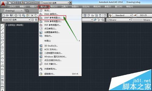 3、我们在打开的CAD新建的文件中,找到菜单栏插入,选DWF参考底图,或者直接用快捷键Alt+I+U,