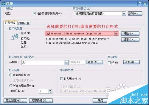 3、在红色区域选择的打印机或者需要的打印格式