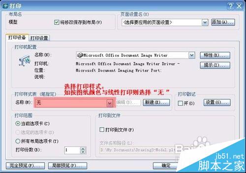 4、选择打印样式,如果按照图纸的颜色和线性打印,则选择“无”
