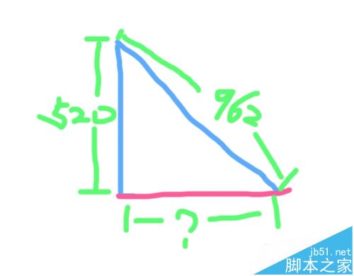 1、首先随便设一下数值,指定直角三角形的高度为520mm,斜边长度为962mm,求底边长度为多少?