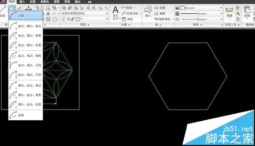 3、然后画是圆弧,选择喜欢的方式,常用的是三点