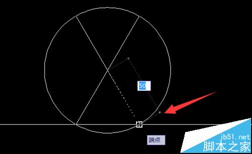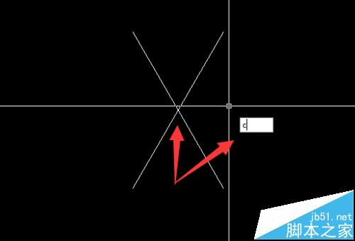 4、输入画圆命令“c”,并指定两线中点为圆心。