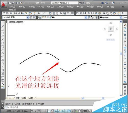 CAD怎样在两条曲线之间创建平滑的过渡连接?怎样将两条曲线合拼?下面举例说明。