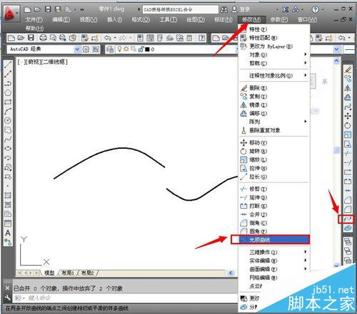 2、选择“修改”,“光顺曲线”,或者直接单击工具条上的按钮。