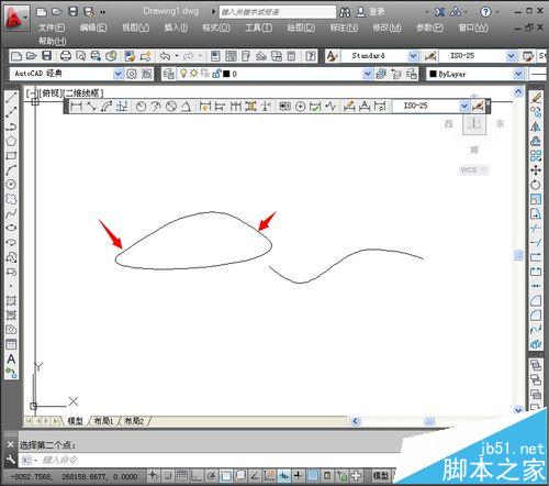 1、如图,想在两条曲线之间创建光滑的过渡连接,让两条曲线相连。