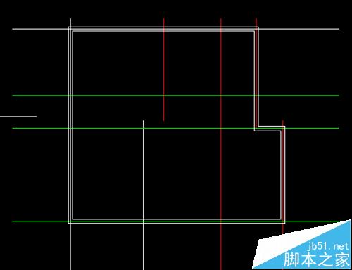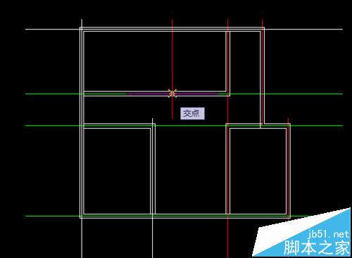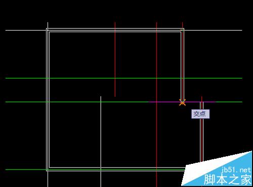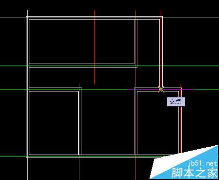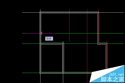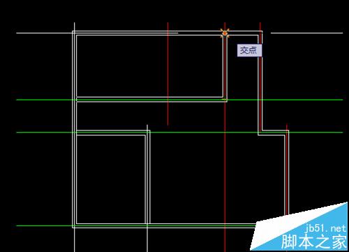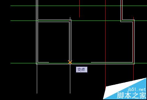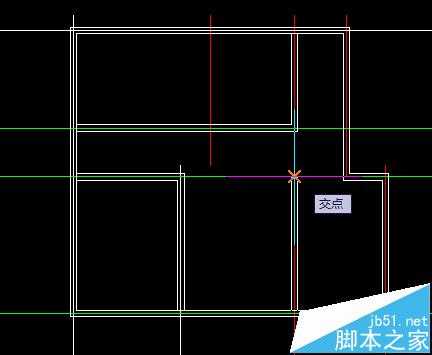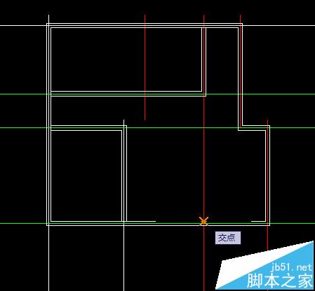 1、上一章我们已经把一半的轴线画完了,因为我们上一章讲过只需要画出一半最后在镜像(跟复制差不多意思)一下就可以。所以我们只需要画一半。首先我们要做的就是先把上一章画的轴线弄完整然后在画墙线,由于墙线需要很多的交点来完成,所以我们要看我们的轴线是否有足够的交点,当初我们画的轴线就差一个交点,那个交点是不可避免要删掉的,所以现在我们画上就好了,看我们当初的轴线的下图的位置,你会发现两条线没有相交,现在我们让它相交,发现下图中垂直的第二条线与水平的第三条线没有相交了吗?让它相较只需要在命令行输入“ex”回车。然后点击下图中水平的第三条线,回车,然后再点击下图中垂直的第二条线就可以了,你会惊奇的发现他们相交了。