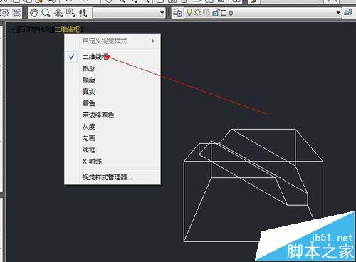打开需要获取二维视图的三维实体模型的文件,并选择显示模式为“二维线框”,用Layer命令加载“Hidden”虚线模型。