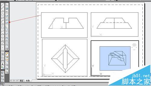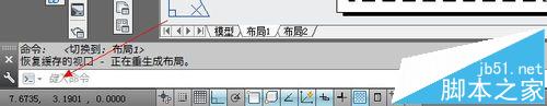 单击绘图窗口下方的选项卡“布局1”,进入图纸空间,如图。