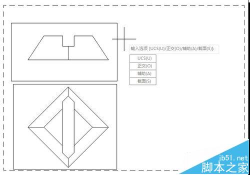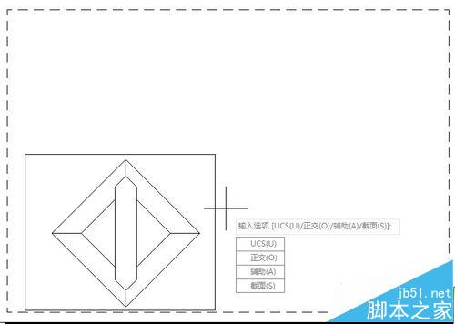 在输入选项【UCS(U)/正交(O)/辅助(A)/截面(S)】:用鼠标选择“UCS(U)”或者键入“U”后按【Enter】键。