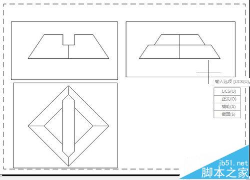 在输入选项【UCS(U)/正交(O)/辅助(A)/截面(S)】:用鼠标选择“正交(O)”或者键入“O”后按【Enter】键。(以已有视口为参照基准,建立新的显示正交投影的视口)