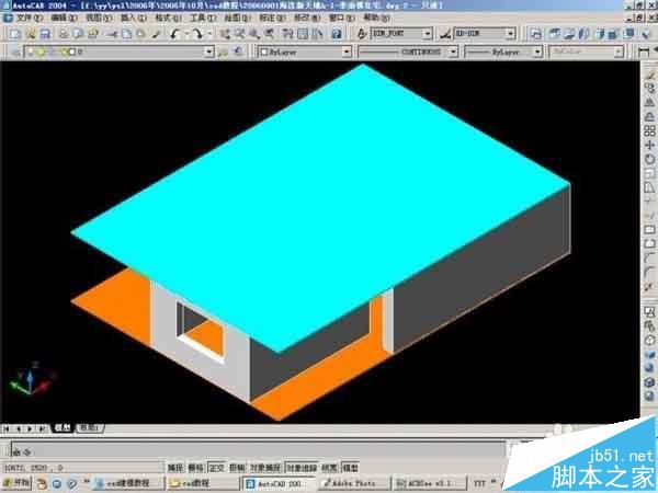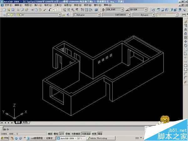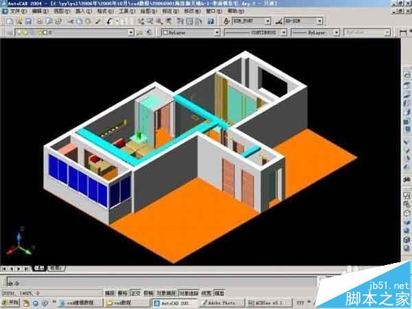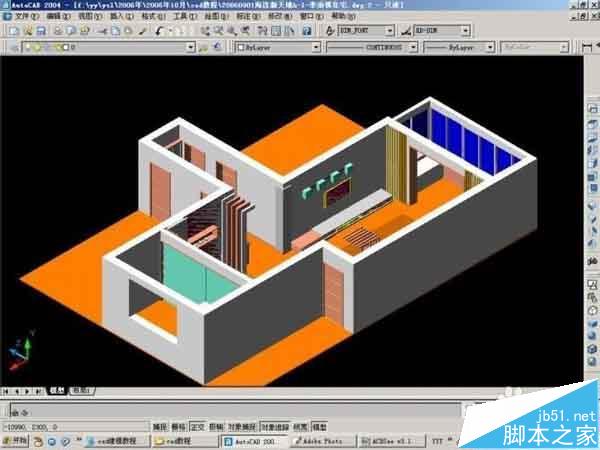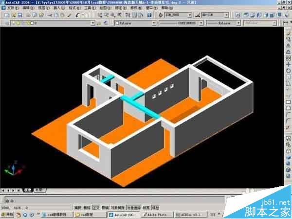 9、把1-吊顶图层隐藏掉,rr渲染命令后得到墙体、地面、及门窗的简单表图。