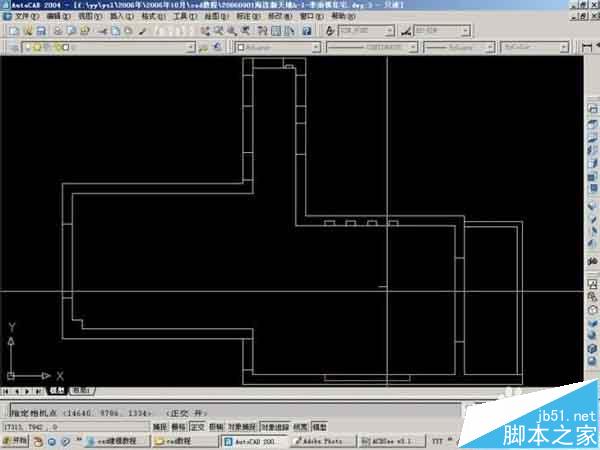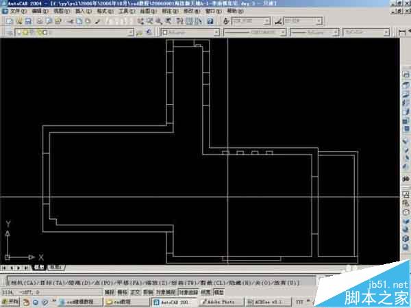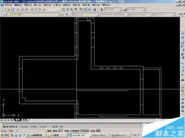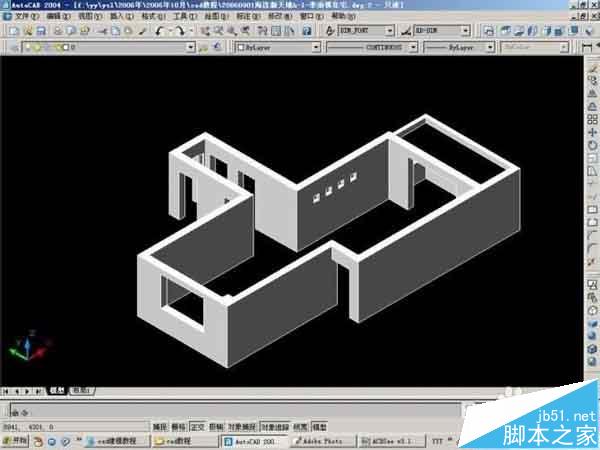 3、用多义线把要表现的区域(墙体)轮廓绘制好,扁移280[一个墙体厚],用ext命令拉伸2650[墙高], 再用su命令布尔运算就可得到墙体,用类似的方法做出门洞和墙面壁龛。把建好的墙体模放在1-墙体图层中。