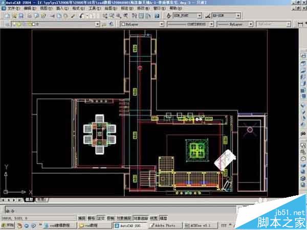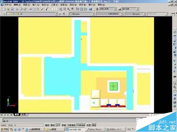 13、用i命令插入cad家具模块[模放在1-家具图层]。