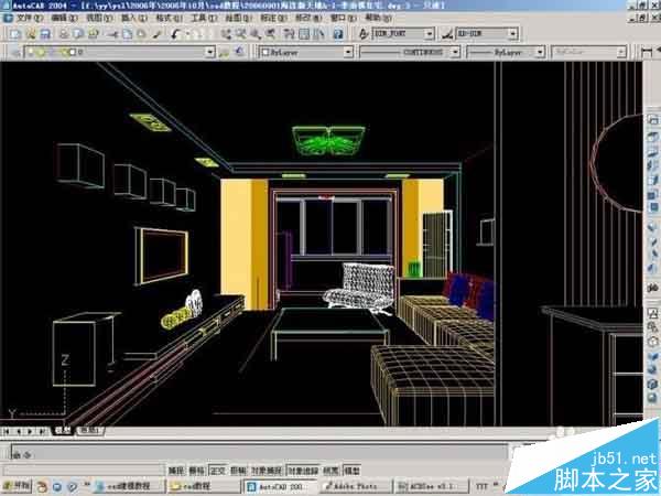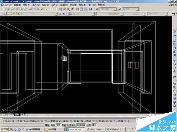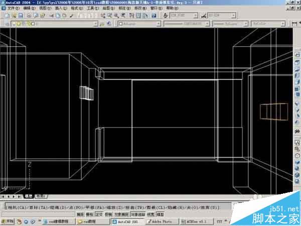 27、如果得到的结果不是很理想,可以在输入dv命令,重复以上的操作,期间还可以结合z[相机缩放,相当于焦距]和cl[相机修剪,相当于剪刀,可以站在墙外,通过修剪透过墙体看到室内]来达到理性的透视效果,得到好的角度。